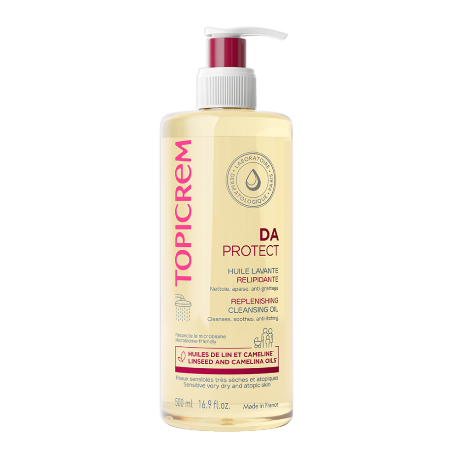 DA PROTECT Lipid-Replenishing Cleansing Oil combines effectiveness and sensorially thanks to its rich, creamy texture and its fragrance specifically developed to respect atopic skin. Enriched with a complex of lipid-replenishing and soothing active ingredients, the lipid-replenishing cleansing oil strengthens the skin barrier. The sensations of itching and irritation are soothed. Its gentle sulfate-free cleansing base gently cleanses and respects the microbiome of the sensitive, very dry and atopic skin. Long-lasting effectiveness: boosts hydration for 8 hours.